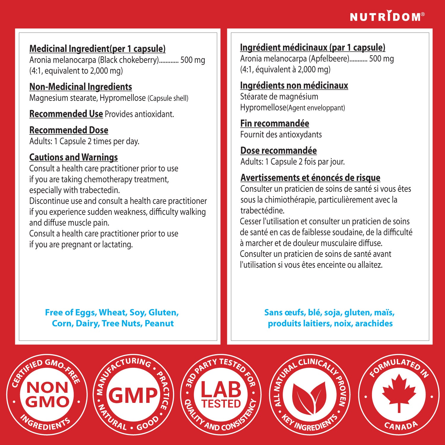 Nutridom North American Aronia | 500mg (2000mg QCE) | 120 Vcaps