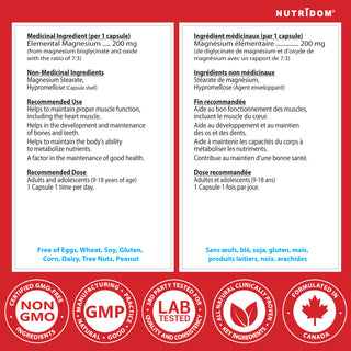 Nutridom Magnesium Bisglycinate 200mg | Chelated Magnesium | Muscle, Teeth, Bone and Metabolism | 300 Vcaps