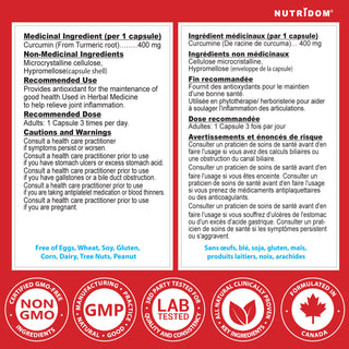 Nutridom Curcumin 400 mg | Turmeric Extract | 95% Curcuminoids | 60 Vcaps