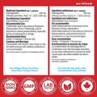 Nutridom Ashwagandha 500mg (2,000mg QCE) | 4x Extra Strength | 60 Vcaps