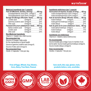 Nutridom Omega 3-6-9 |Fish, Borage & Flaxseed Oil | EPA & DHA | 120 Softgels