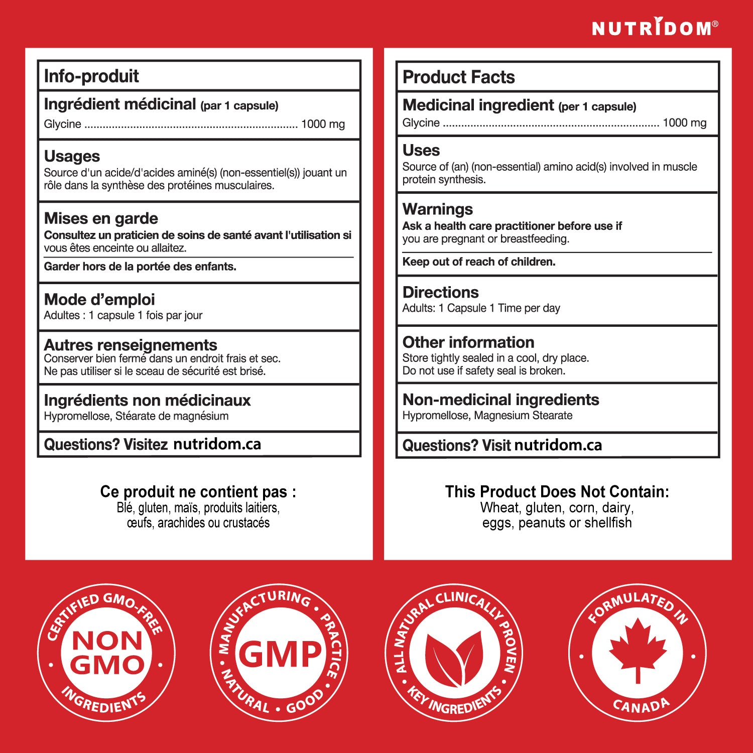 - Glycine (Aminoacetic acid) 1,000mg Free form amino acid