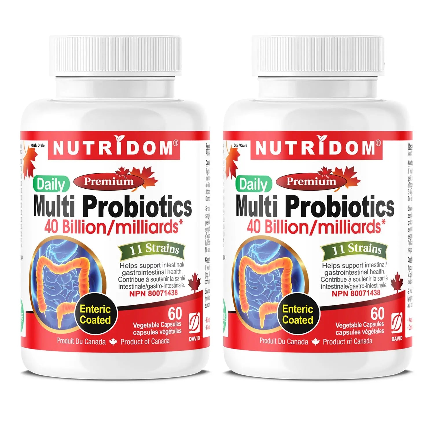 Nutridom Multi Probiotics 2-Pack provides a complete 2-month supply of high potency digestive support. Each bottle contains 60 vegan capsules delivering 40 billion active cells per 2-capsule serving, with 11 clinically studied human origin probiotic strains. Value bundle pricing for committed gut wellness.