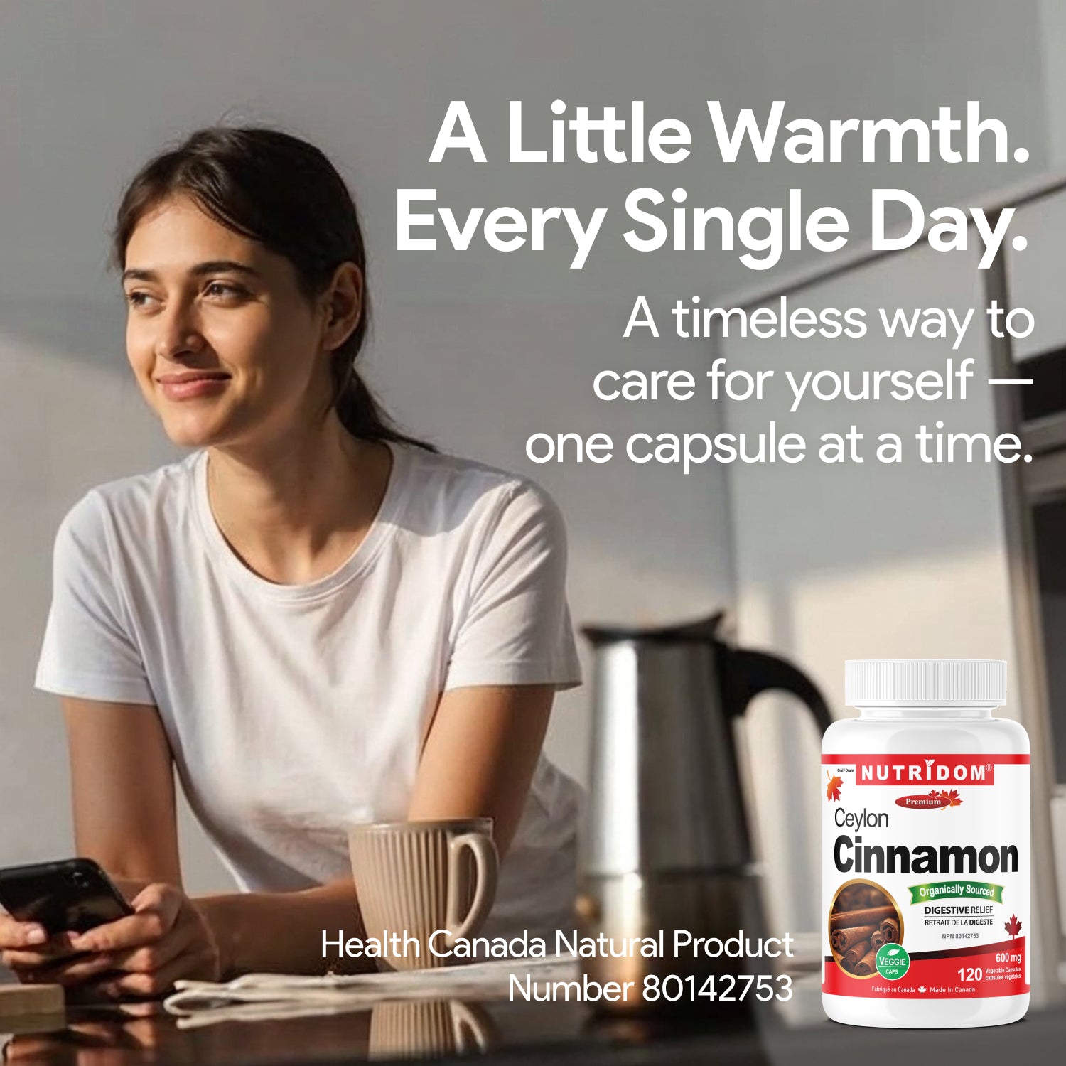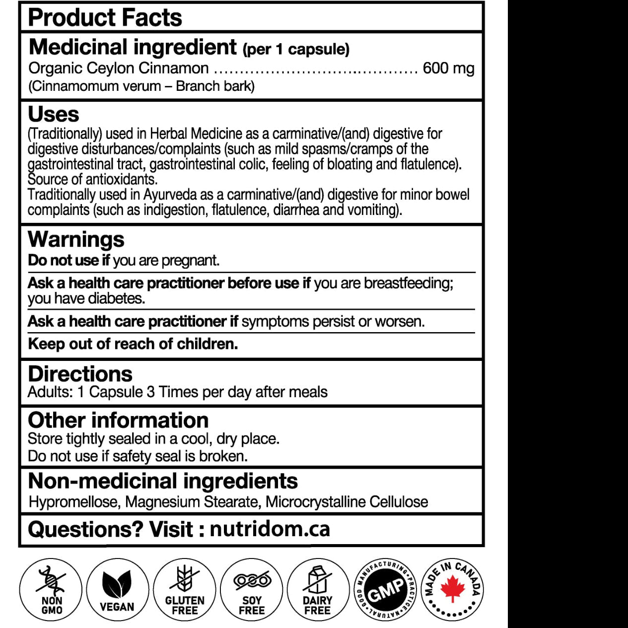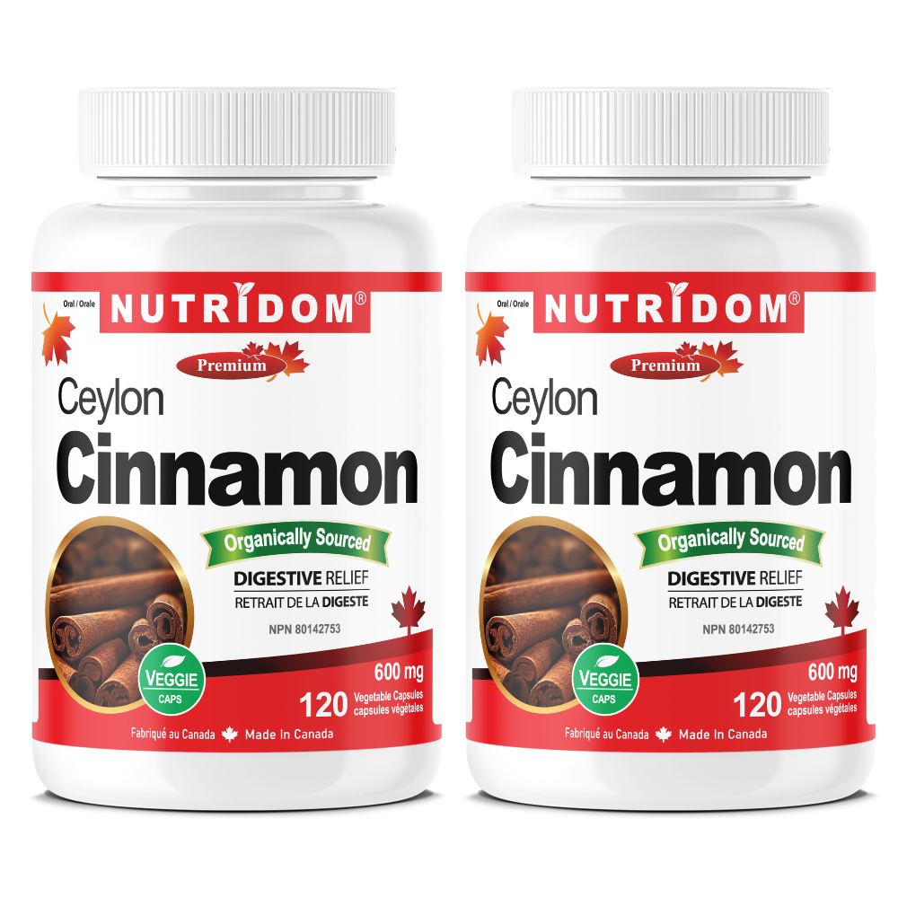 Organic Ceylon Cinnamon 600mg | Cinnamomum verum | Carminative and Digestive | 120 Vcaps x 2 | NPN 80142753