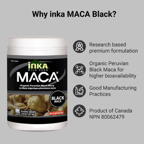 InkaMaca Organic Black Maca Powder is made from 100% pure, certified organic black maca root grown in the highlands of Peru. Black maca is the rarest and most potent variety of maca, known for supporting energy, stamina, and vitality naturally.