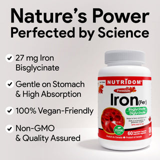 Nutridom Iron Bisglycinate 27mg | High Absorption | 60 Vcaps