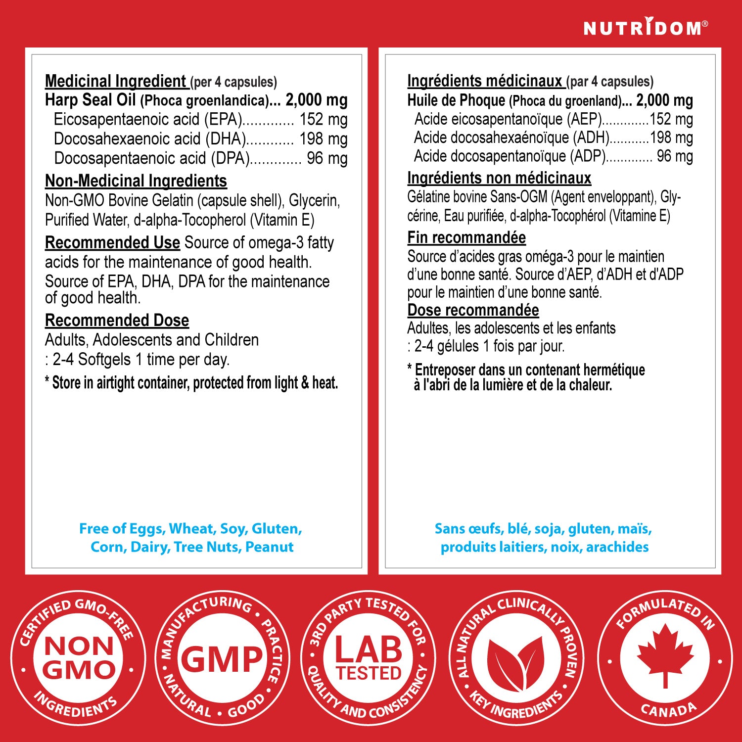 Nutridom Seal Oil Omega-3 is sourced from wild Canadian harp seal, providing a natural and balanced source of essential fatty acids. Unlike standard fish oil, seal oil contains higher levels of docosapentaenoic acid (DPA), which works in synergy with EPA and DHA for improved benefits and absorption.