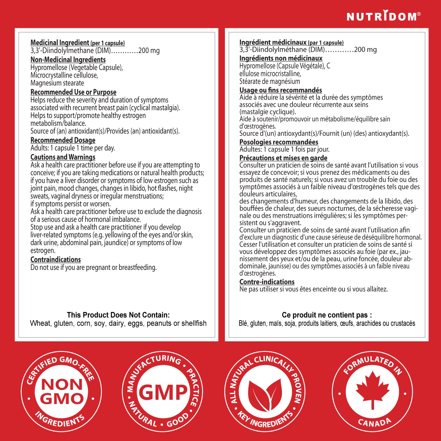 Nutridom DIM (Diindolylmethane) delivers 200 mg per capsule, providing natural support for healthy estrogen metabolism.