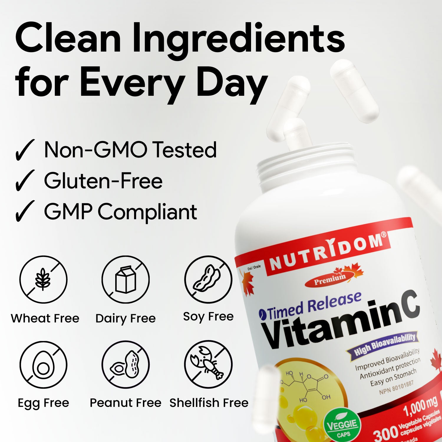 A: Yes, Nutridom Time-Release Vitamin C 1000 mg is safe for long-term use when taken as directed, providing continuous support for immune function, antioxidant protection, and overall health.