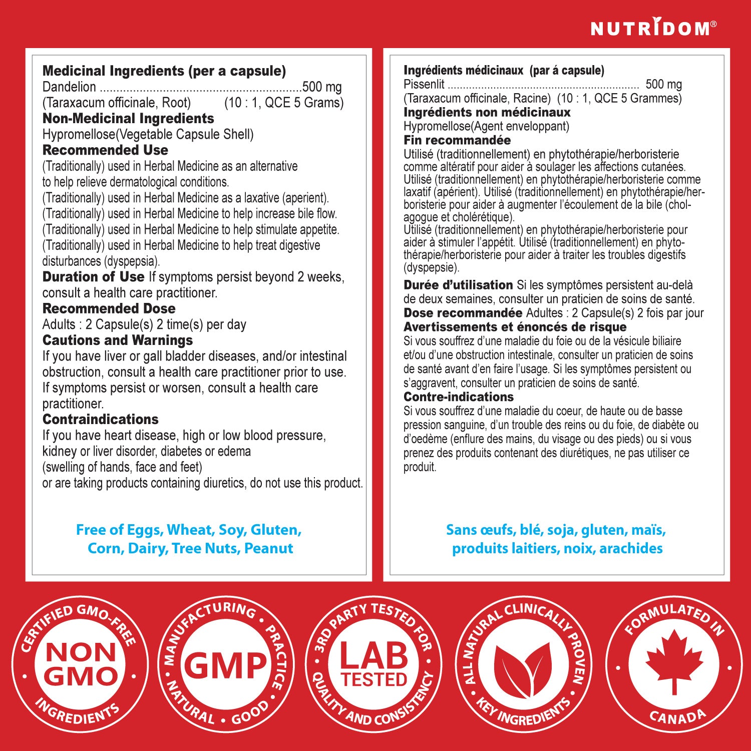 Découvrez le pouvoir purifiant de l'Extrait de Racine de Pissenlit Nutridom, votre allié naturel pour la détox et le nettoyage du foie. Provenant des meilleures racines de pissenlit, ce supplément traditionnel à base de plantes est savamment formulé pour soutenir les processus de détoxification de votre corps, favorisant ainsi une fonction hépatique plus saine. Fièrement fabriqué au Canada, notre extrait de racine de pissenlit est encapsulé dans 120 capsules végétales faciles à avaler, garantissant une expérience sans OGM et sans gluten. Adoptez un produit plus propre et revitalisé grâce à l'engagement de Nutridom envers la pureté et la qualité. Parfait pour ceux qui recherchent une approche naturelle de leur routine de bien-être.