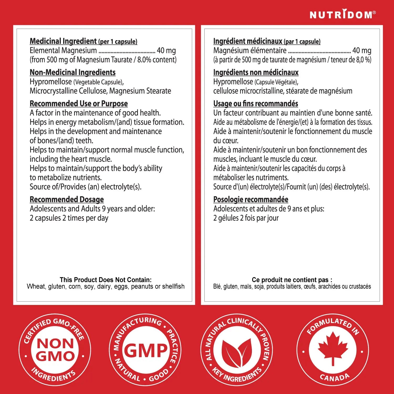 뉴트리돔 마그네슘 타우레이트는 엄격한 품질 관리 프로토콜과 우수 제조 기준(GMP)을 준수하는 캐나다 시설에서 생산됩니다. 모든 배치는 제품의 일관성과 안전성을 보장하기 위해 성분, 순도 및 효능에 대한 검사를 거칩니다.