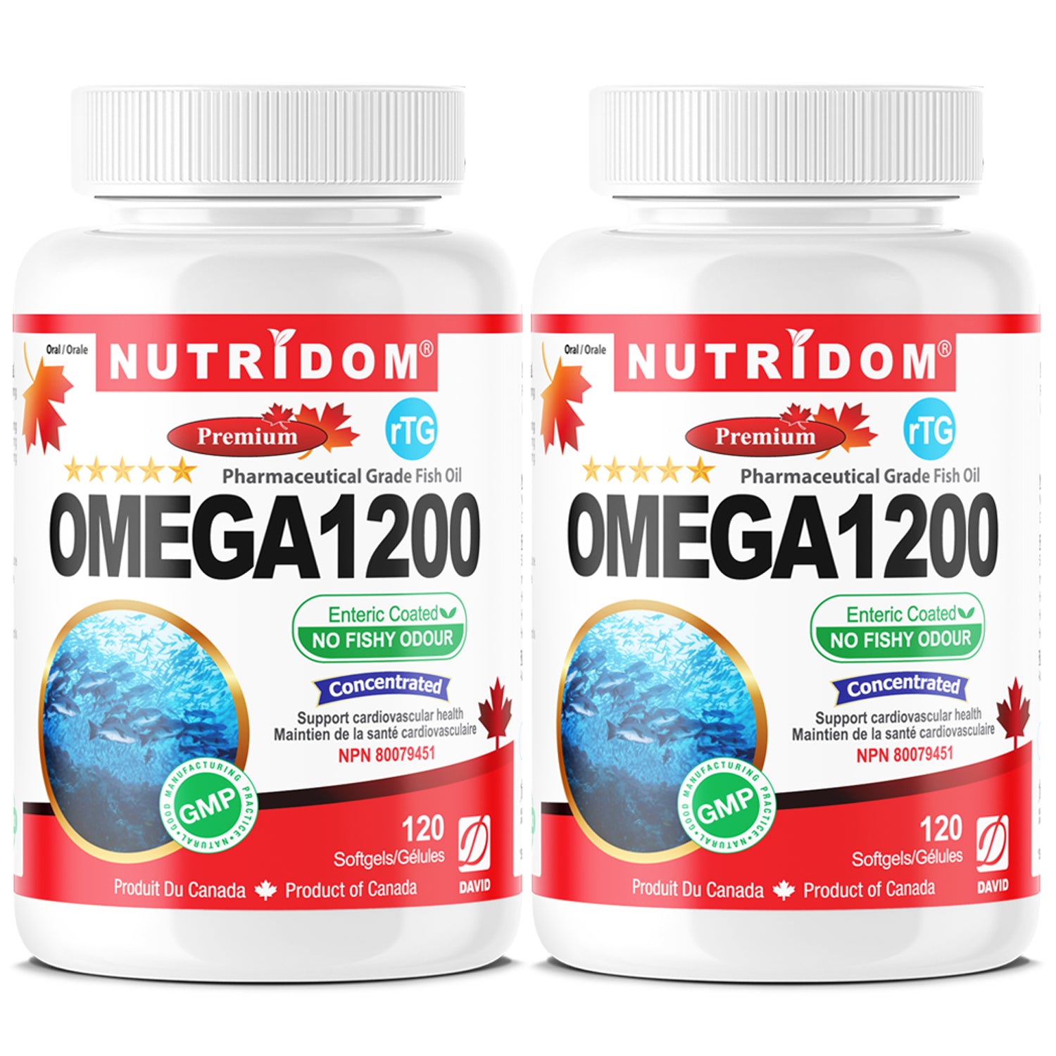 뉴트리돔 오메가 1200 피쉬 오일 | IFOS 5스타 | rTG 포뮬러 | 120캡슐 | 캐나다산