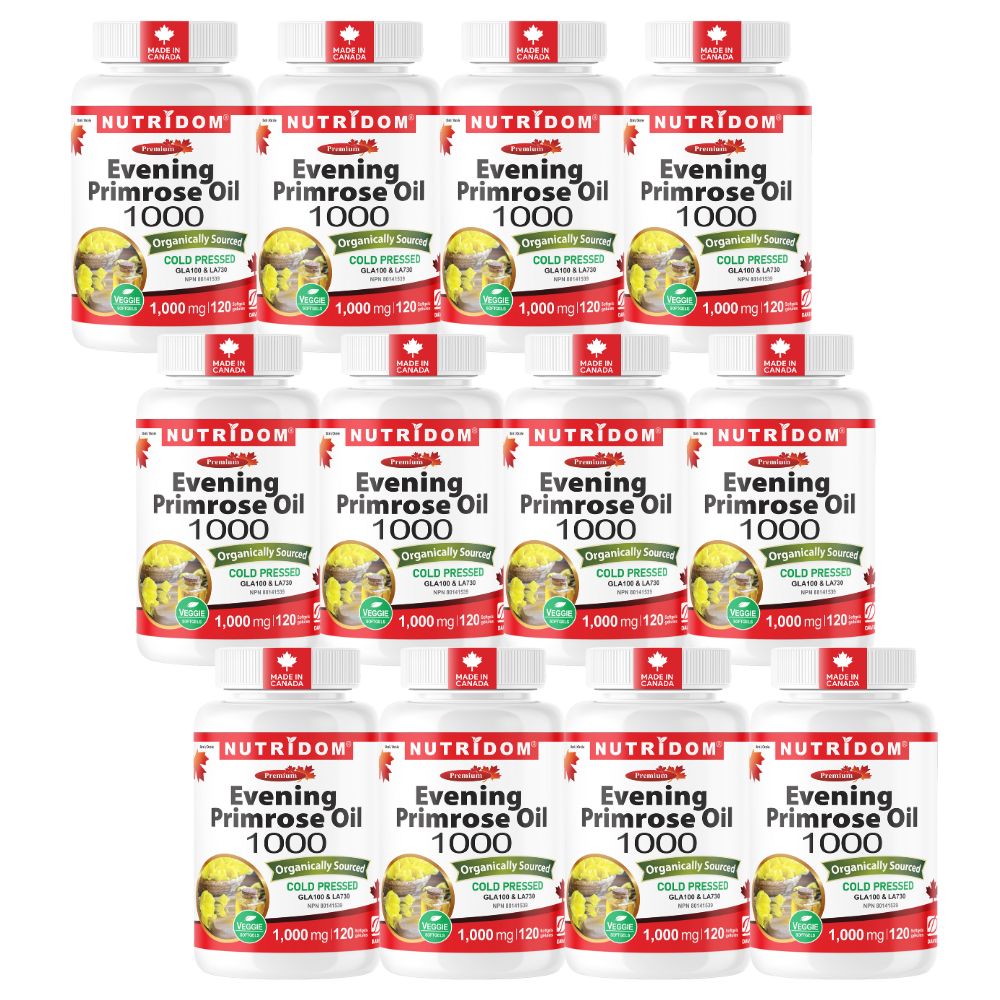Nutridom Evening Primrose Oil 1000mg | Organic | Cold Pressed | 120 Veggie Softgels - 12 Pack