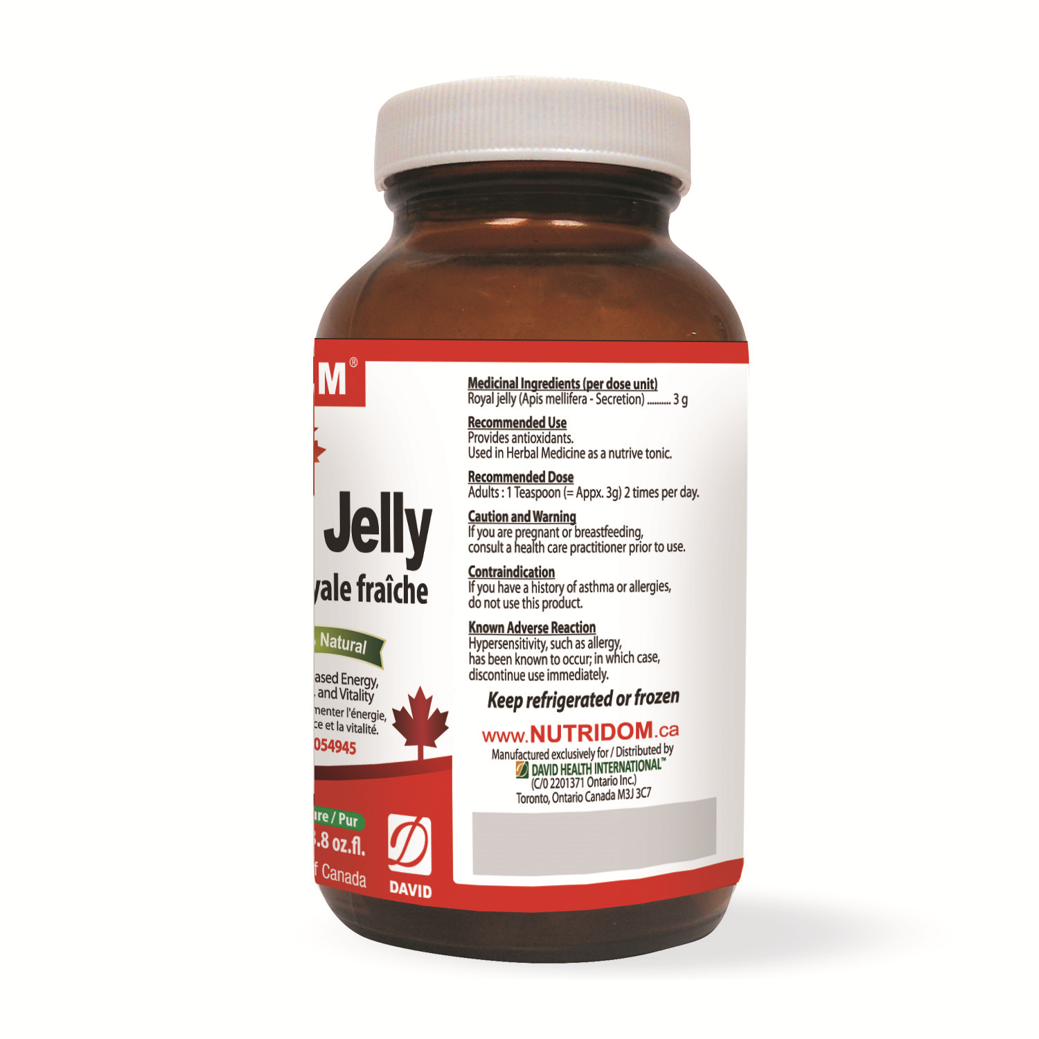 Nutridom Fresh Royal Jelly 250g (8.8 oz) | 100% Raw & Natural | Sourced from North American Beehives | Made in Canada
