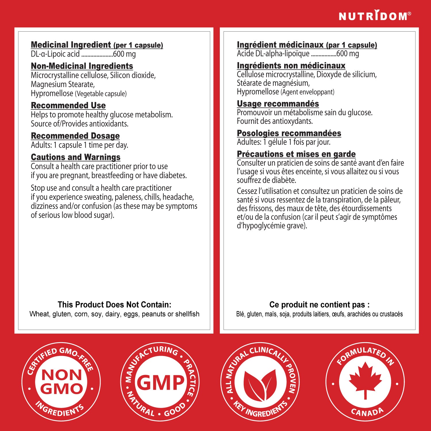 Nutridom Alpha Lipoic Acid 600mg | Antioxidant & Metabolism Support | 60 Vcaps