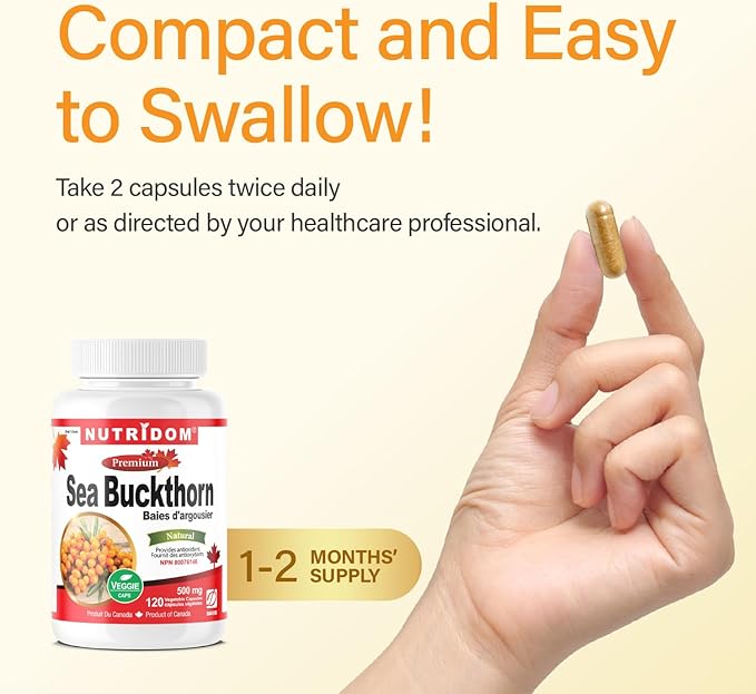 Nutridom Sea Buckthorn 500mg | Omega 7 & Antioxidant | 120 Vcaps